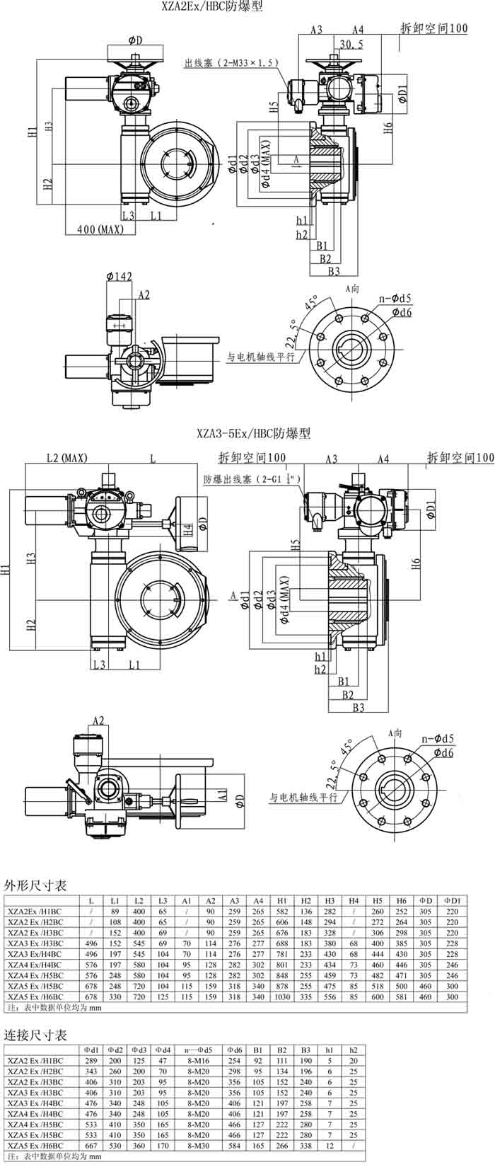 XZA-HBC防爆型產(chǎn)品外形及連接尺寸
