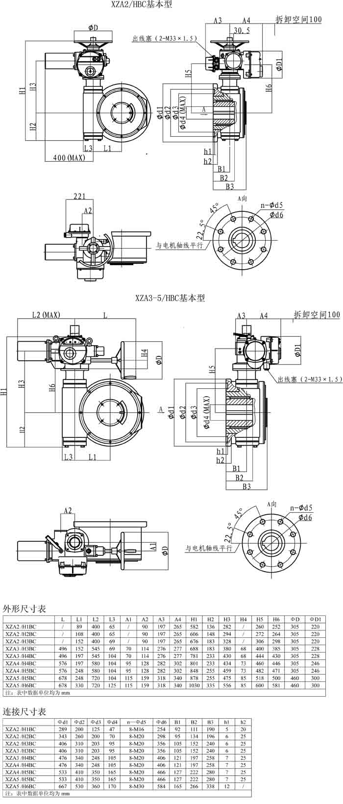 XZA-HBC普通型產(chǎn)品外形及連接尺寸