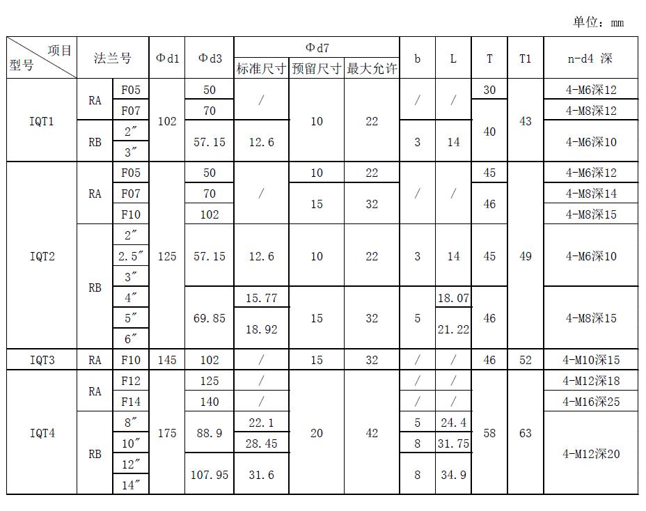 IQT1~I(xiàn)QT4/JS(220V單相電機(jī))系列技術(shù)參數(shù)表
