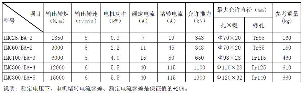 IMC/BA系列閥門電動裝置是一種組合型多回轉(zhuǎn)閥門電動裝置。它適用于閘閥、截止閥等類型的閥門。BA系列產(chǎn)品是可同時承受轉(zhuǎn)矩和軸向推力(通常稱為扭矩推力型)的圓錐齒輪閥門驅(qū)動裝置。其傳動型式可以滿足右旋手動操作閥門為“關(guān)”的標(biāo)準(zhǔn)要求,結(jié)構(gòu)緊湊且大圓錐齒輪便于設(shè)置內(nèi)部有一定直徑的貫通孔輸出軸,可使明桿閥門的閥桿在開啟時從輸出軸的內(nèi)孔伸出。BA系列產(chǎn)品可與中小轉(zhuǎn)矩規(guī)格的多回轉(zhuǎn)電動裝置組合成為較大輸出轉(zhuǎn)矩規(guī)格的組合式多回轉(zhuǎn)閥門電動裝置。