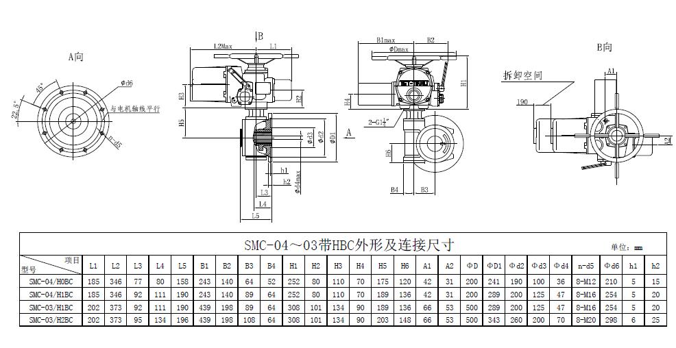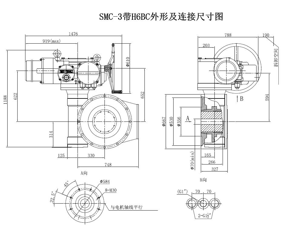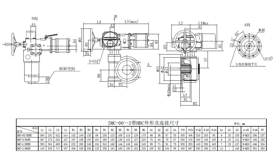 SMC/HBC系列電動裝置是SMC系列多回轉(zhuǎn)電動裝置與HBC蝸輪減速器的組合型式,它適合球閥、蝶閥等部分回轉(zhuǎn)閥門的驅(qū)動控制。SMC/HBC電動裝置具有以下特點:結(jié)構(gòu)設(shè)計堅固可靠,產(chǎn)品規(guī)格齊全,驅(qū)動轉(zhuǎn)矩范圍大且動力輸出穩(wěn)定, 具有良好的自鎖性能。 HBC輸出軸結(jié)構(gòu)獨特,裝有與閥桿連接的漸開線花鍵接頭,產(chǎn)品的安裝調(diào)試方便。