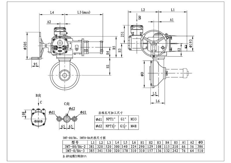IMT/BA系列智能型電動裝置是IMT系列中小轉(zhuǎn)矩多回轉(zhuǎn)智能型電動裝置與BA圓錐齒輪減速器的一種組合型式,它適合閘閥、截止閥等多回轉(zhuǎn)閥門的驅(qū)動控制。IMT/BA智能型電動裝置具有以下特點:以較小轉(zhuǎn)矩規(guī)格的IMT電動裝置與BA減速器組合可獲得更大的輸出轉(zhuǎn)矩。在輸出轉(zhuǎn)速允許的條件下,選用該產(chǎn)品能夠提高所選電動裝置規(guī)格的通用性,便于產(chǎn)品的使用、維護。