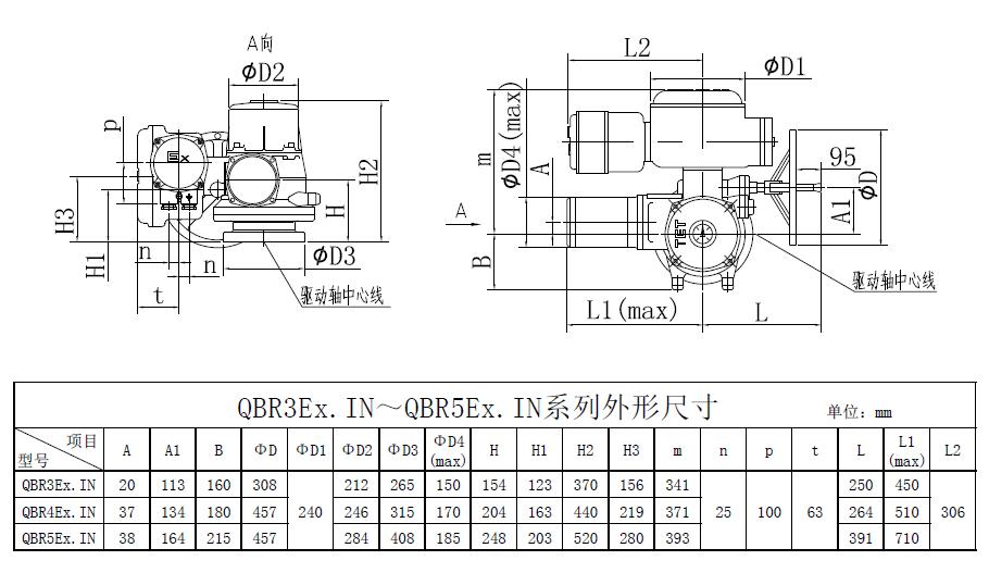 QBR3QBR5是我公司研制的部分回轉(zhuǎn)閥門電動裝置,控制轉(zhuǎn)矩范圍:900N.m12000N.m。該電動裝置可與球閥﹑蝶閥等閥瓣做90°回轉(zhuǎn)的閥門組合成電動閥門,其功能是控制閥門的啟閉。該電動裝置能夠進(jìn)行單機(jī)或多機(jī)室內(nèi)控制遠(yuǎn)距離控制電動操作和現(xiàn)場手動或電動操作,可廣泛地應(yīng)用在具有管道閥門的工業(yè)系統(tǒng)。該產(chǎn)品的防護(hù)等級為IP67,隔爆型產(chǎn)品(型號中有Ex)的隔爆等級 為dBT4