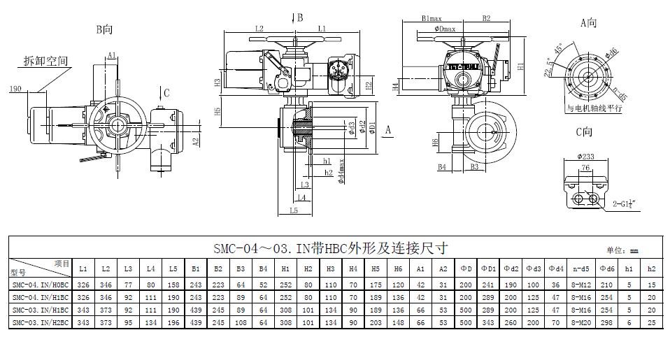 SMC/HBC系列電動(dòng)裝置是SMC系列多回轉(zhuǎn)電動(dòng)裝置與HBC蝸輪減速器的組合型式,它適合球閥、蝶閥等部分回轉(zhuǎn)閥門(mén)的驅(qū)動(dòng)控制。SMC/HBC電動(dòng)裝置具有以下特點(diǎn):結(jié)構(gòu)設(shè)計(jì)堅(jiān)固可靠,產(chǎn)品規(guī)格齊全,驅(qū)動(dòng)轉(zhuǎn)矩范圍大且動(dòng)力輸出穩(wěn)定, 具有良好的自鎖性能。 HBC輸出軸結(jié)構(gòu)獨(dú)特,裝有與閥桿連接的漸開(kāi)線花鍵接頭,產(chǎn)品的安裝調(diào)試方便。