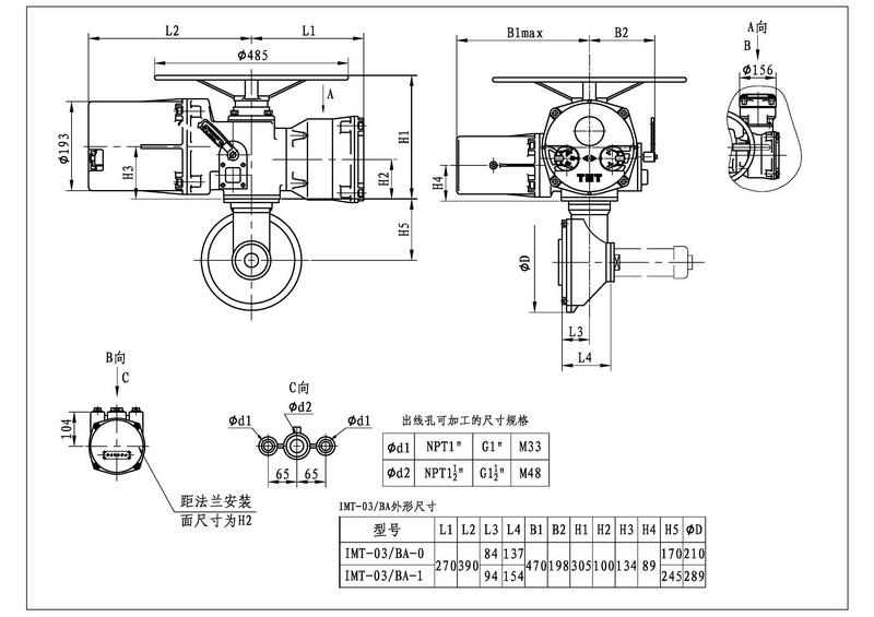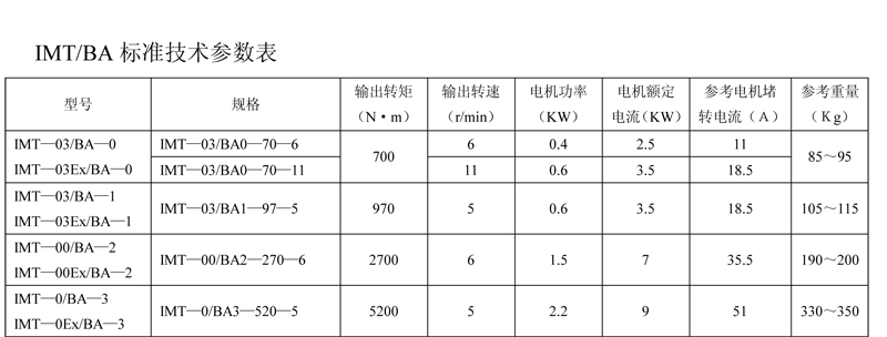 IMT/BA系列智能型電動裝置是IMT系列中小轉(zhuǎn)矩多回轉(zhuǎn)智能型電動裝置與BA圓錐齒輪減速器的一種組合型式,它適合閘閥、截止閥等多回轉(zhuǎn)閥門的驅(qū)動控制。IMT/BA智能型電動裝置具有以下特點(diǎn):以較小轉(zhuǎn)矩規(guī)格的IMT電動裝置與BA減速器組合可獲得更大的輸出轉(zhuǎn)矩。在輸出轉(zhuǎn)速允許的條件下,選用該產(chǎn)品能夠提高所選電動裝置規(guī)格的通用性,便于產(chǎn)品的使用、維護(hù)。