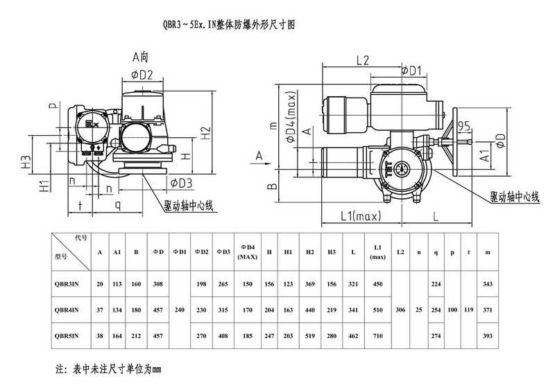QBR3~QBR5是我公司研制的部分回轉(zhuǎn)閥門電動裝置,控制轉(zhuǎn)矩范圍:900N.m~12000N.m。該電動裝置可與球閥﹑蝶閥等閥瓣做90°回轉(zhuǎn)的閥門組合成電動閥門,其功能是控制閥門的啟閉。該電動裝置能夠進行單機或多機室內(nèi)控制遠距離控制電動操作和現(xiàn)場手動或電動操作,可廣泛地應(yīng)用在具有管道閥門的工業(yè)系統(tǒng)。該產(chǎn)品的防護等級為IP67,隔爆型產(chǎn)品(型號中有Ex)的隔爆等級 為dⅡBT4。